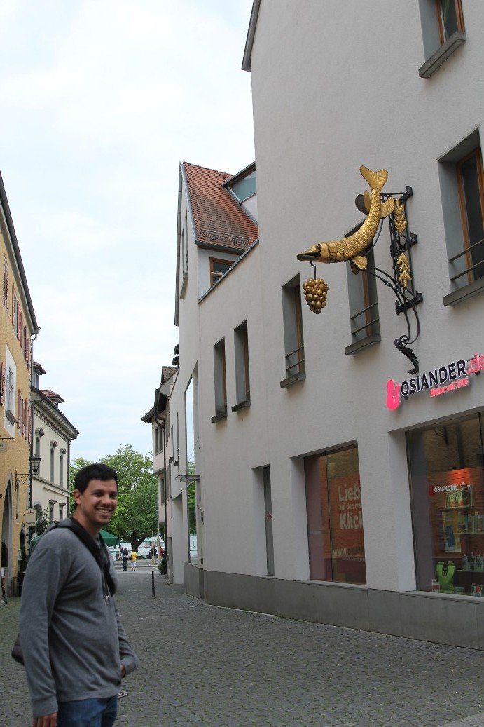 Nós não havíamos reservado hotel pras 2 noites que rodamos de carro, pois não sabíamos ao certo a rota que faríamos e nem quanto tempo levaríamos em cada lugar. Geralmente a gente encontrar algum lugar qualquer pra dormir, mas nesse esquema aletório, às vezes damos sorte e outras nem tanto. Nesse dia tivemos um pouco de dificuldade pra encontrar um hotel vago, pois estava rolando um feriado prolongado na Alemanha e os hotéis estavam lotados. Rodamos bastante até encontrar uma vaga no Hotel Koenigsaecker, em Friedrichshafen. Só tinha um quarto restante, com uma cama de solteiro e o preço salgadinho: 70 euros, pra dormir apertadinho em uma cama de solteiro. Tá bom.. pelo menos não dormimos no carro e tomamos um cafezinho da manhã no dia seguinte.
